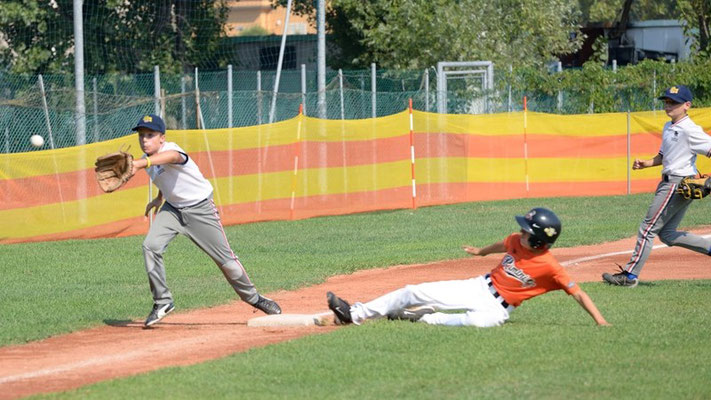 Il risultato della finalina contro i Lions pare netto, ma in realtà si è sofferto: nelle riprese dove i Piratini non segnano si "muore" con prima tre, poi due uomini in base e il disappunto per non essere stati in grado di chiudere anzitempo l'incontro. I Lions, quando è il loro turno di battere, non mollano mai la presa e pur non riuscendo a segnare, al secondo riempiono le basi con un out e al terzo ci riescono con due out. Insomma, sugli spalti certo non ci si è annoiati! Sul monte Selva si occupa della prima parte dell'incontro, seguono Giovanelli e Pedrazzi. Molto bene il line-up che ottiene la miglior prestazione del torneo con 6 valide e Bruno ancora un volta sugli scudi 2/3 con il suo secondo fuoricampo interno del torneo e un doppio. Altrettanto bene la difesa che coglie rubando due corridori avversari e all'ultimo inning effettua un doppio gioco per la via 6-4-3, peccato solo che gli out erano già due....