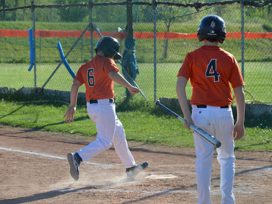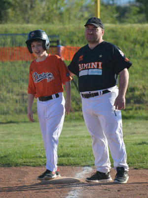Prima partita sul campo amico per l'Under 12 Corsari opposti ai Piranhas Valmarecchia; questa volta oltre a Venturi e Di Carlo dai Pirati U12 arriva in prestito Riccardo Drudi che gioca la prima partita nella categoria da lanciatore: per lui, dopo la comprensibile emozione iniziale arrivano due inning di qualità in cui effetttua 6k, 2bb, 1v.